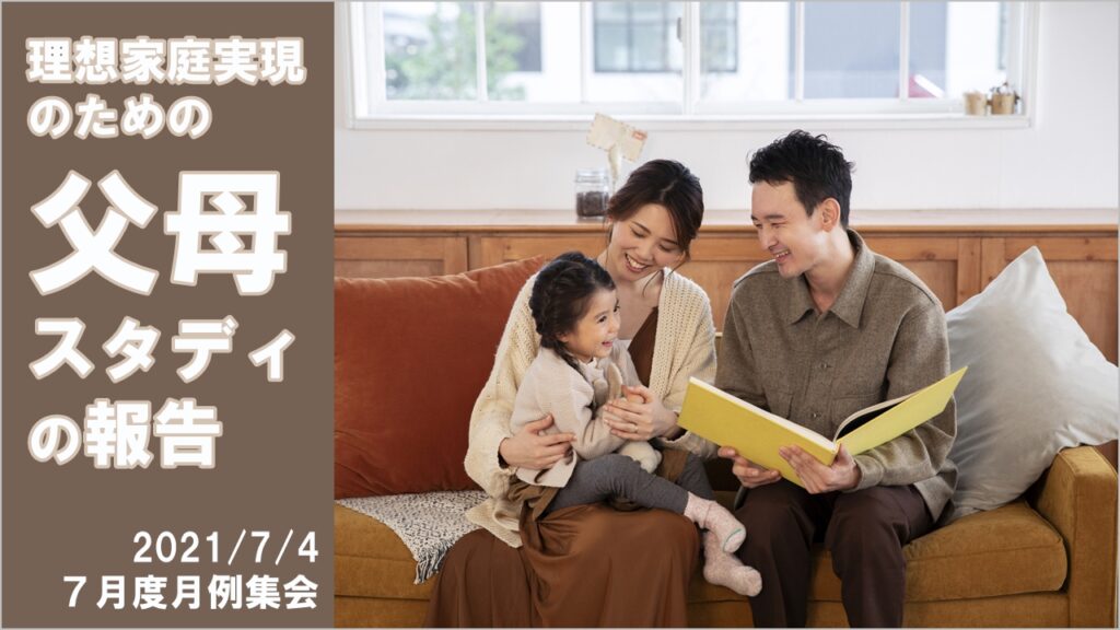 同じく7月度の月例集会において、3月から4ヵ月にわたって行われた「理想家庭実現のための父母スタディ」の報告を、参加者の二橋さんから頂きました。父母スタディでは、幼い子女をもつ父母が隔週で集い、毎回一つのテーマについて学びます。その内容を後日、夫婦で話し合い、子どもを交えて訓読し、ポイントを伝えていくというサイクルを通して、家庭教育の定着を目指そう、というのが父母スタディの目的になります。詳細を見る