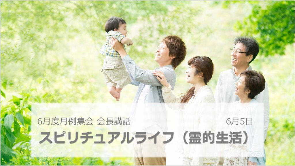 6月5日、FPA月例集会では、「スピリチュアルライフ(霊的生活)」というタイトルで、櫻井正実会長より礼拝メッセージを頂きました。顯進様は常に、私たち自身における霊的生活の成長と発展を重視されます。会長は霊的生活を、①自己主管する生活(⇔肉的生活:自己の欲求に流されている)、②喜び溢れる生活(⇔外的生活:内的に復興していない)、③愛を投入する生活(⇔愛のない生活:家族との間に壁がある)といった3つの側面から整理し、顯進様の御言を引用しながら解説してくださいました。
