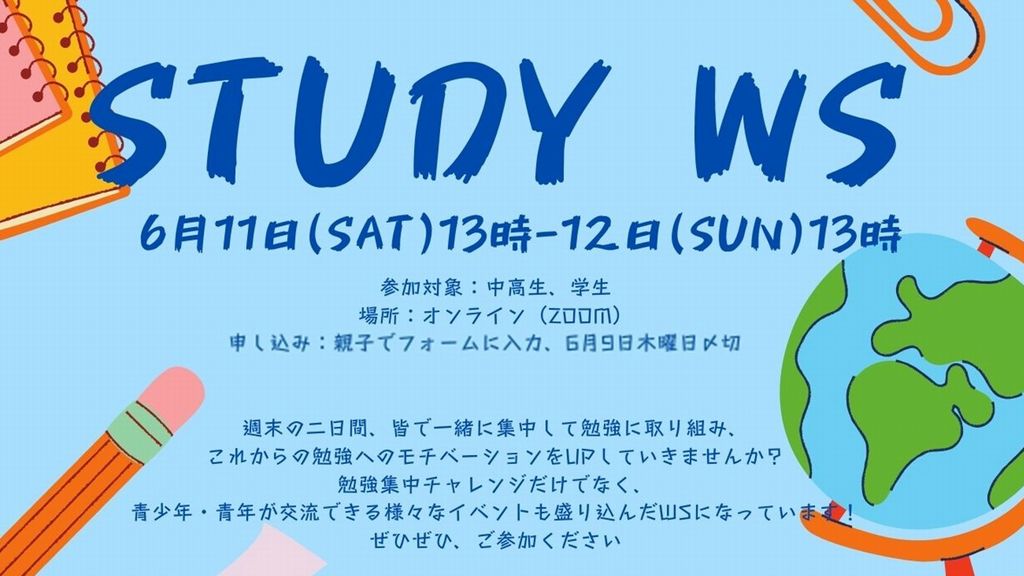② 青年有志企画「Study ワークショップ」(6/11-12)