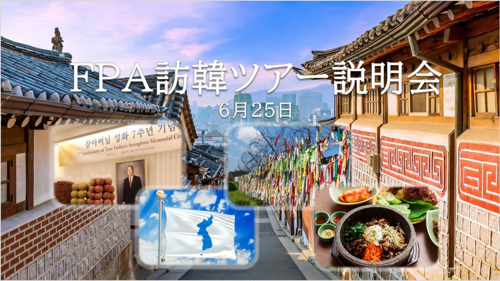 6月25日夜、今夏企画されている訪韓プログラムに関する説明会がもたれました。説明会は3部構成で行われ、まずは、①朝鮮半島を巡る内外の情勢と南北統一運動の進展に関する説明に始まり、②今回のグルーバルツアー韓国大会の意義、③プログラムに関する詳細案内と続きました。ビザの取得、コロナ渦での渡航、各家庭の経済事情等、様々な現実的課題もありますが、各々の参加可否を越え、今回の大会に込められた摂理的意義を、今一度、共に噛み締めることのできるひと時となりました。