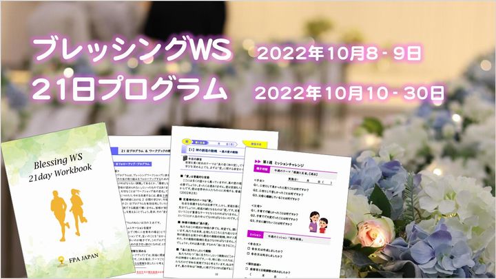 10月8~9日、2日間にわたってブレッシングWSが開催されました。1日目は、懇談を交えながら、FPAの祝福観について学習。2日目は、具体的準備と手順を踏まえ、前日の学びを今後の実践に落とし込むための時間をもちました。