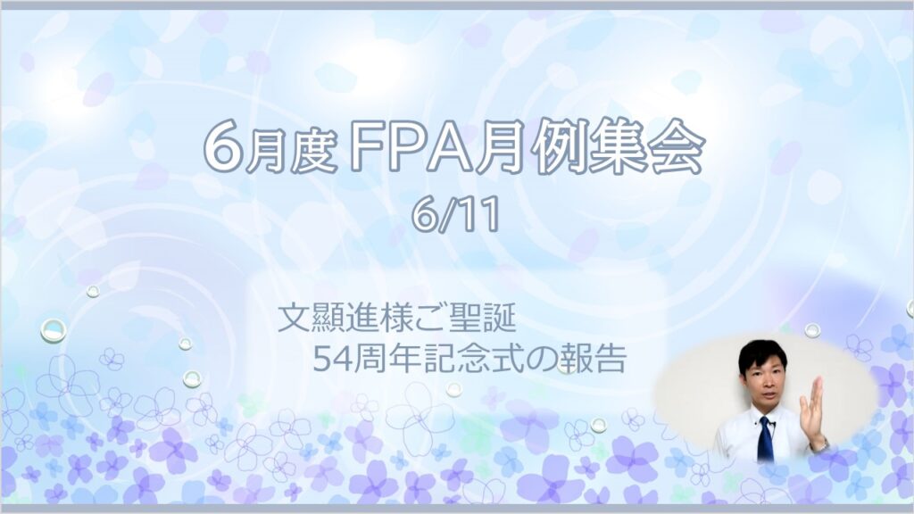① 6月度FPA月例集会(6/11)文顯進様ご聖誕54周年記念式の報告