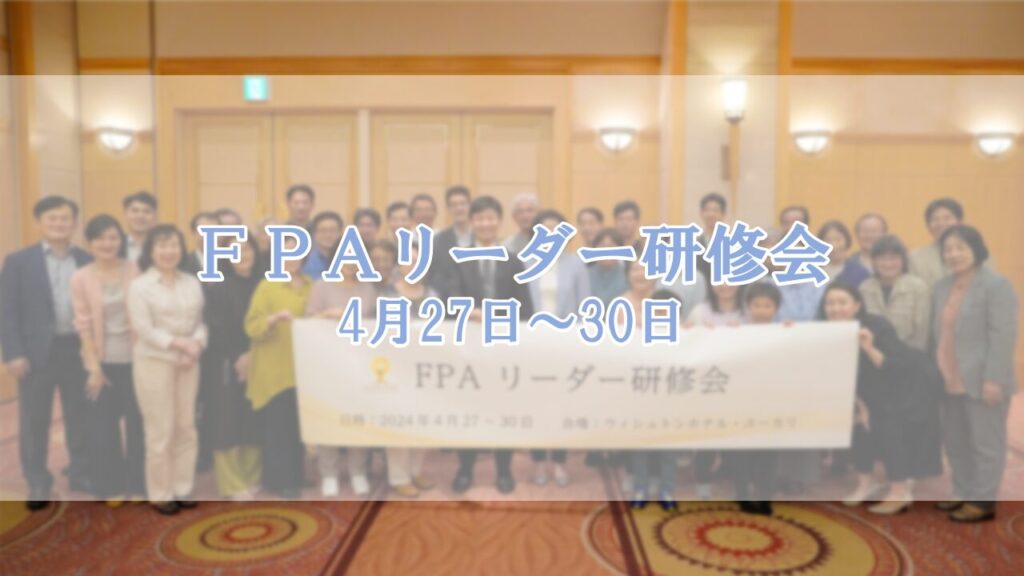 4月27日~30日、千葉県の施設にて、全国のリーダー40名強が一堂に会する中、FPAリーダー研修会が行われました。