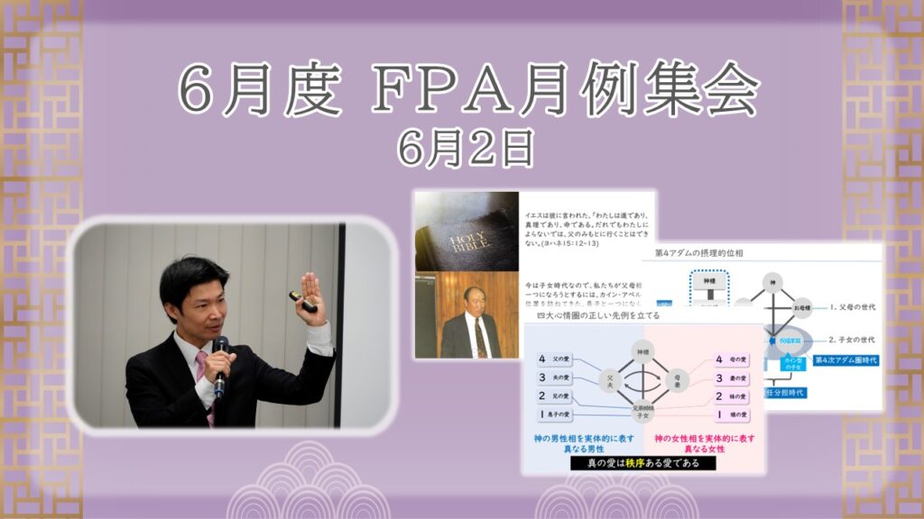 FPAの四大名節(神の日・父母の日・子女の日・万物の日)は神様の創造目的(三大祝福)を示したものであり、人生で最も価値あるものを思い起こす日です。