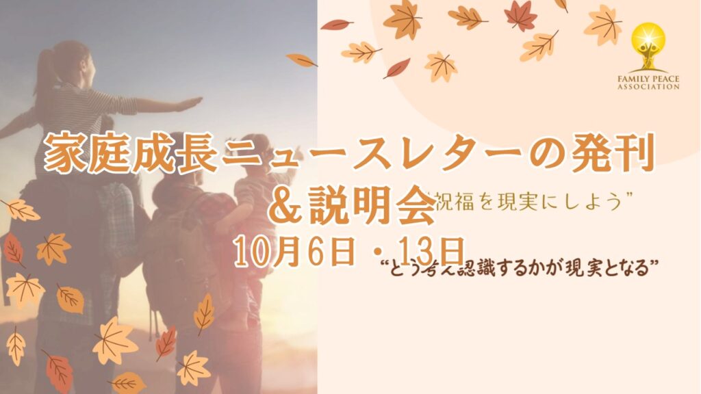 10月6日、この度の新企画として、FPAインターナショナルより「家庭成長ニュースレター(10月号)」が発刊されました。