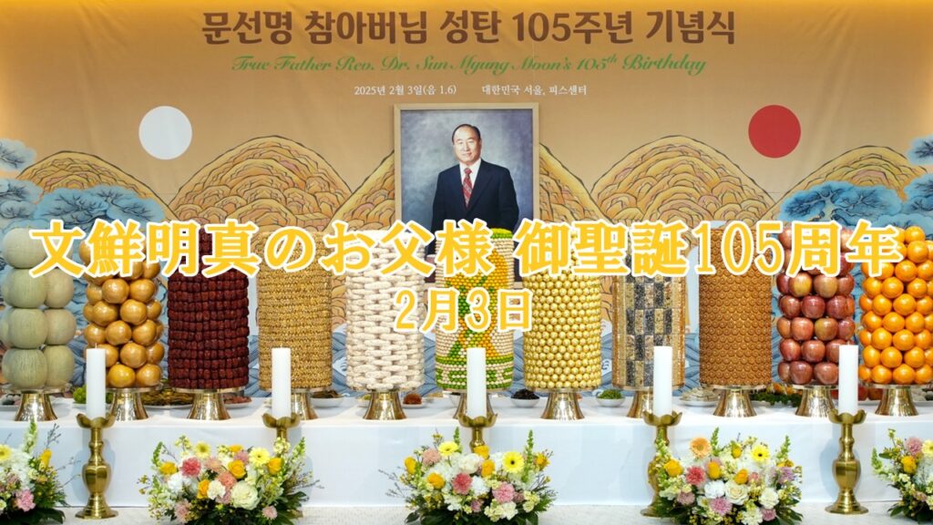 2月3日、韓国・ピースセンターにて「文鮮明・真のお父様 御聖誕105周年記念式」が行われました。この日は、真のお父様の生涯を思い起こし、御旨の相続を誓う日に他なりません。