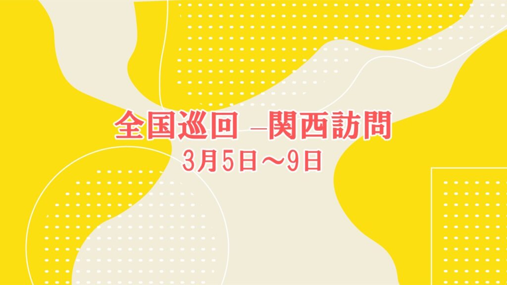 3月5日~9日、先月に続く全国巡回の一環として、櫻井会長が近畿地域を訪問。大阪を拠点に奈良・京都、兵庫の会員家庭を巡回し、心温まる交流がなされました。
