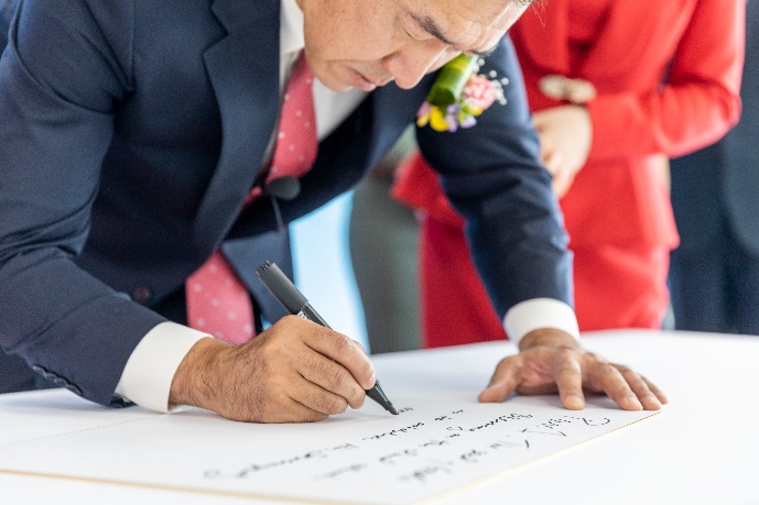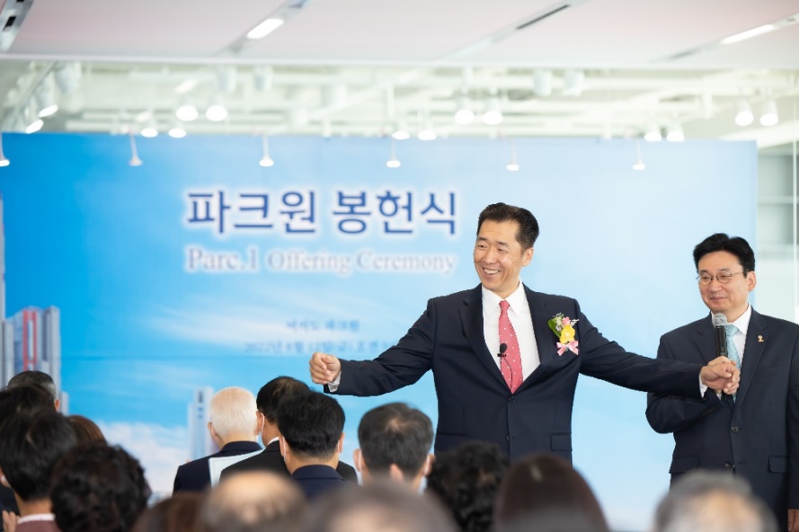 「天のお父様、私たちは、この歴史的な施設の開館を記念することができますことを心から感謝申し上げます。このパークワンは、この地、この国の歴史の新しい始まり、幕明けを記念するものであり、神様あなたの主権を代表することのできる真の国家を立てるというあなたの摂理に根ざした希望と約束の種を蒔いていくことになることでしょう。