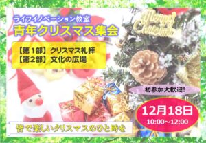 「祝福家庭ニュース」でご案内しました通り、今月の青年集会・ライフイノベーション教室は、昨年同様、「青年クリスマス集会」として実施いたします。