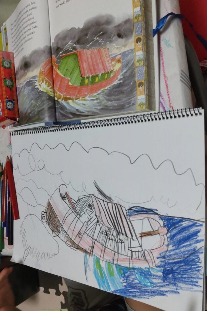 家族の絆の時間を晴天にしてくださったのも、クルーズを楽しみにしていた長男への神様の愛だなぁと感じました。長男はお絵かきだけでなく工作も好きで、今日はノアの方舟を作りました。(^▽^)
