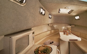5人乗りで魚群探知機付き、就寝スペースがあるボート