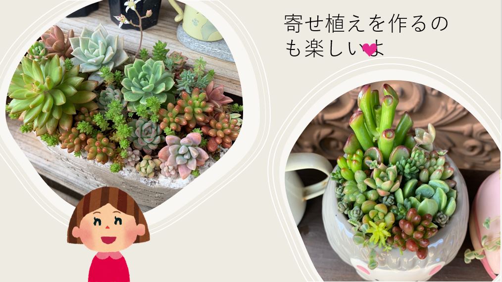 私は、多肉を単体で育てるのも好きなんですが、よく寄せ植えを作って育てています。これも作るのがなかなか難しくて、作成するのに1時間以上かかったりするのですが、出来上がった時の達成感と作品の可愛らしさがたまらないです。