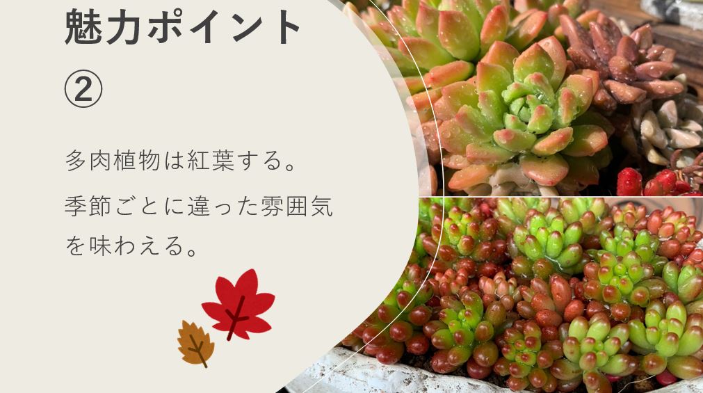 秋が深まってくると、いろんな植物が赤く色づいてきますよね。多肉植物も同じで、赤やピンク、紫色に染まってくるんです。